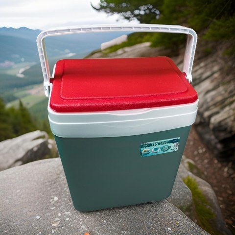 Bardzo wygodna i wydajna lodówka przenośna. Wyprodukowana z materiałów nadających jej wytrzymałość i trwałość. Izolacja termiczna wiadra i pokrywy, zapewnia nawet w gorące letnie dni, utrzymanie nieskiej temperatury wewnątrz pojemnika. Na spodzie dekla wytłoczone cztery mocowania aby stabilnie ustawić kubki lub puszki.