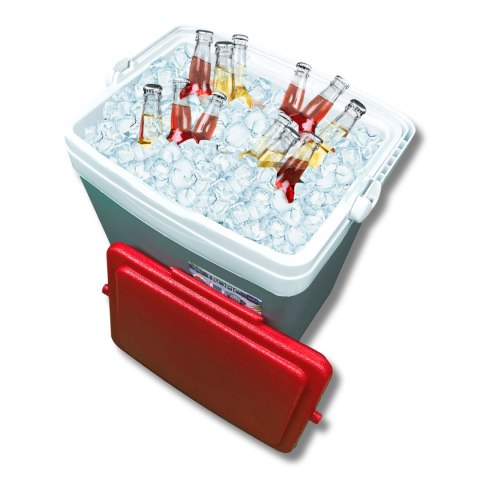 Lodówka turystyczna 25L KAMAI TROPIC na wkłady mrożące, szara z czerwoną pokrywą i białą rączką