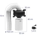 Zestaw wentylacyjny marki Hilvert składa się z produktów o numerach: 10090331, 10090329 i 10090327. Wentylator kanałowy jest cichy, bardzo wydajny i niezawodnie wyciąga do 249,6 m3 powietrza na godzinę. Urządzenie pracuje przy stałym ciśnieniu i z mocą 60 W. Posiada wylot o średnicy 98,5 mm. Rura wentylacyjna jest łatwo rozciągalna do 1000 cm, Spirala jest obustronnie pokryta aluminium, co sprawia że rura jest odporna na korozję, niezawodnie odprowadza parę wodną oraz zużyte powietrze. Rura jest bardzo elastyczna, jej średnica wynosi 100 mm. Filtr z węglem aktywnym wiąże wszelkiego rodzaju niepożądane cząsteczki, niezależnie czy chodzi o dym, opary, benzynę, chemikalia, pestycydy czy zapachy zwierząt. Powierzchnia porowata działa jak gąbka, wiążąc każdą formę cząstek.